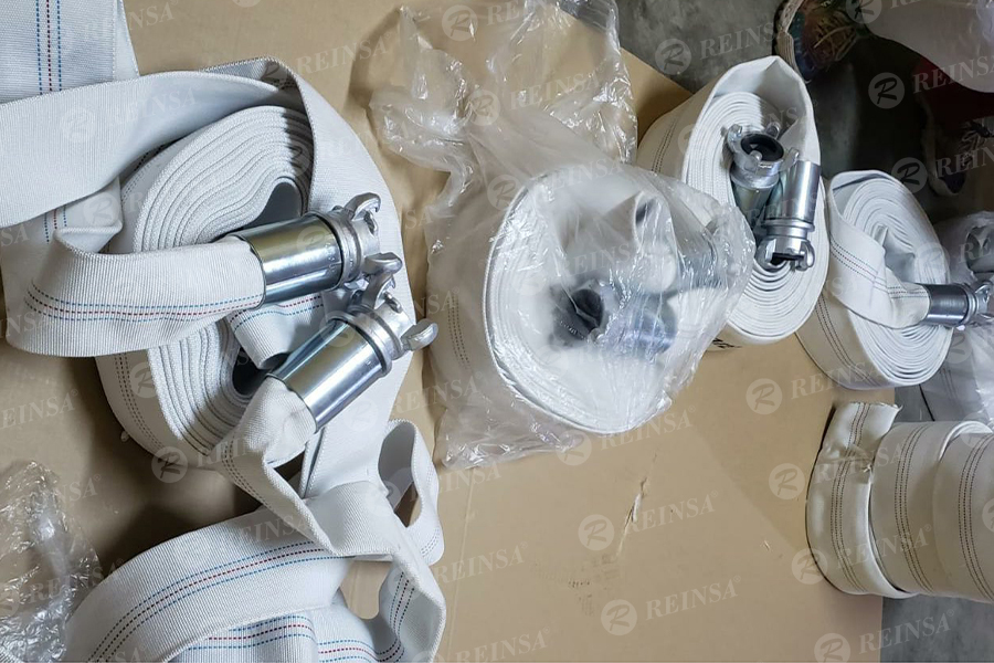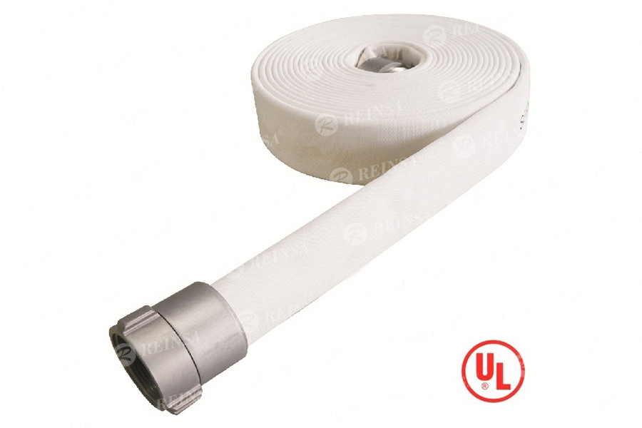La manguera para incendios de cubierta sencilla puede suministrar una presión de trabajo de 150PSI y 250PSI, su capa interna está hecha de caucho EPDM, y la externa está hecha urdimbre de hilos de poliéster y rellenos trenzados en capa.